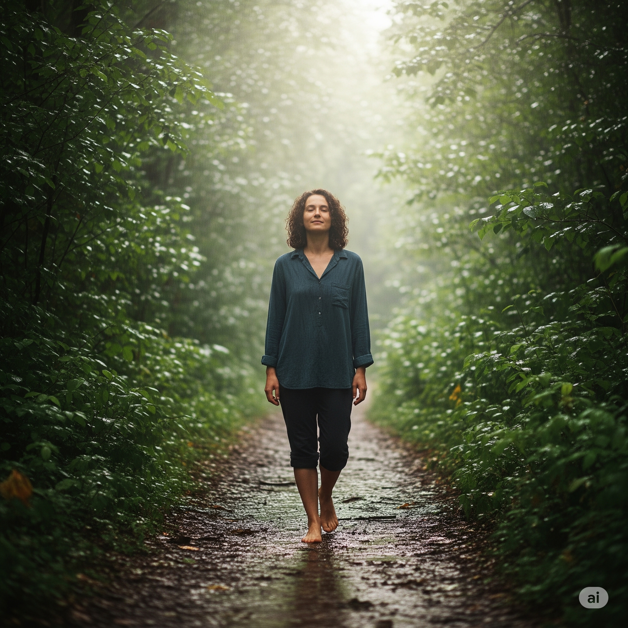 * 스트레스 해소 및 심리적 안정: 빗소리는 심리적 안정감을 주며, 자연 속 맨발 걷기는 스트레스 호르몬 수치를 낮추고 불안감을 줄이는 데 효과적입니다. 빗속을 걷는 동안 오로지 발의 감각과 주변 자연에 집중하며 마음의 평화를 찾을 수 있어요.