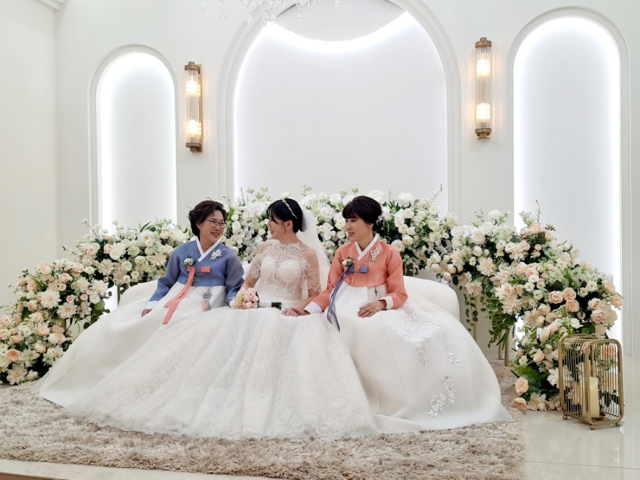 - 커플 한복: 양가 어머님 두 분의 조화로움을 위해 같은 디자인, 다른 색감으로 통일감 있게