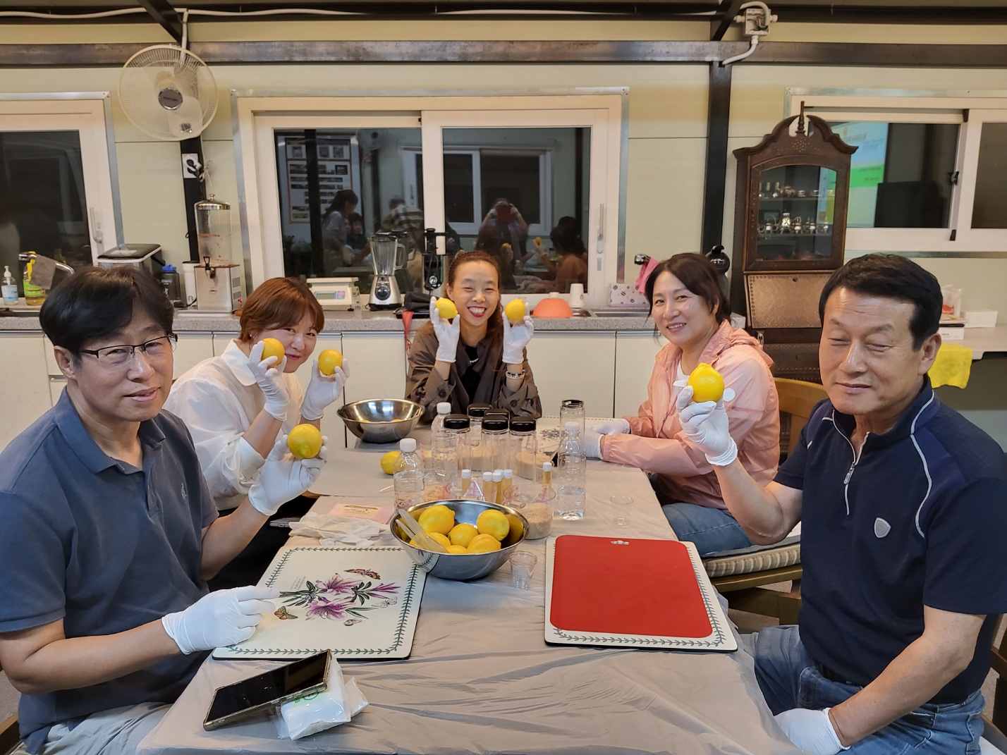 회원들은 각자 정성껏 레몬을 손질하고, 향지촌의 고급 발효 식초를 넣어 자신만의 레몬청을 완성했습니다. 직접 만든 레몬청을 담으시면서 와우? 향기도 좋구나! 너무 행복하다. 모두 환하게 웃는 모습에서 오늘 하루의 만족감이 느껴졌습니다.