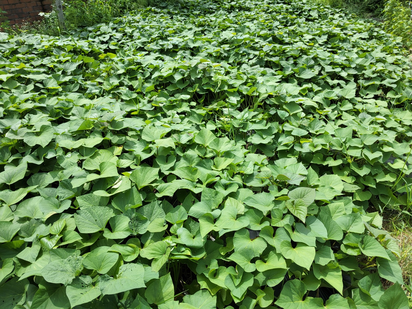 아침 햇살을 받으며 텃밭을 둘러보니, 고구마순들이 “나 좀 데려가~” 하듯 손짓하더라고요