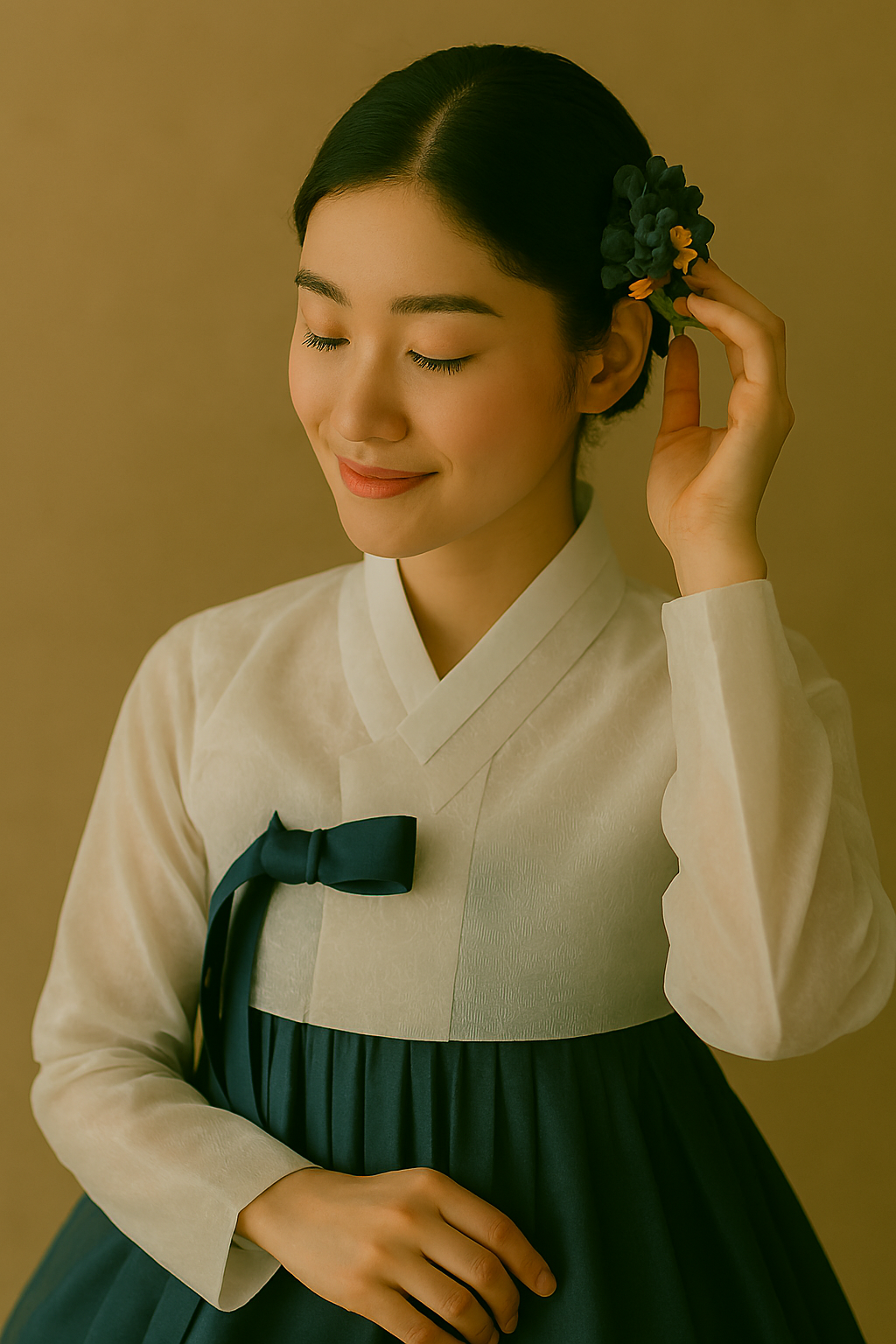 - 소품을 활용한 시선 처리: 부채나 꽃을 들고 시선을 아래로 두는 포즈는 한복의 정적인 아름다움을 극대화합니다. 고개를 살짝 숙이거나 옆으로 돌리면 더욱 우아한 느낌이 살아납니다.