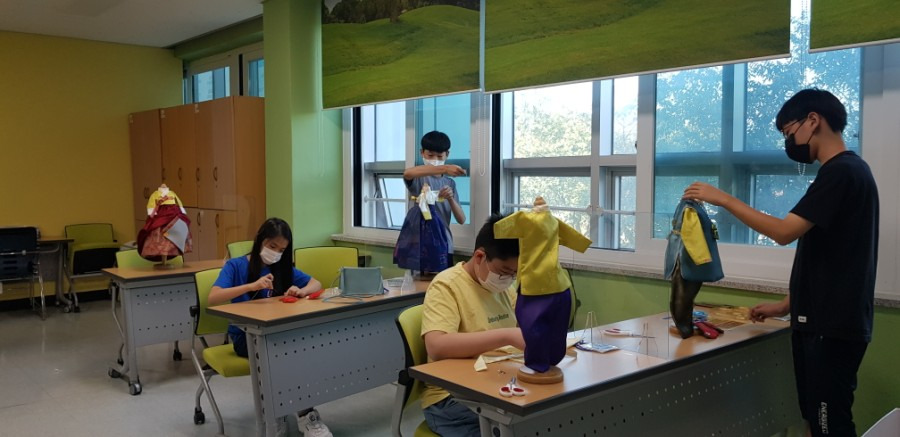 한복 형태가 갖춰지고 마지막 피팅 연출을 하는 날, 아이들의 집중력은 감동 그 자체. 작품발표 시간엔